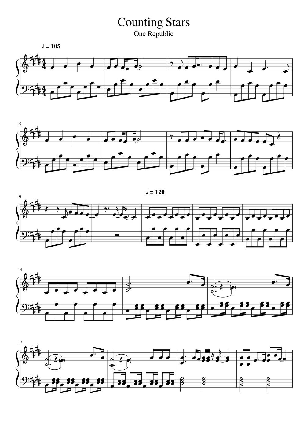 OneRepublic - Counting StarsSheet MusicOneRepublic best tune ever! Hope you guys enjoy it!$4.99 a month4.99usdDownload Sheet Music Untitled 14.99usdSubscribeSize121 KBLength6 pagesAdd to wishlist New wishlistShareShare on XShare on Facebook Copy linkCopy product URL